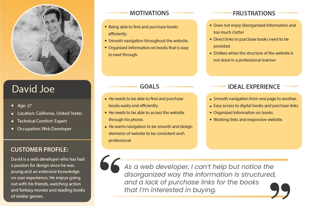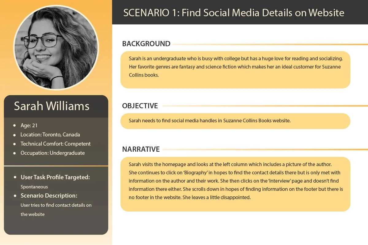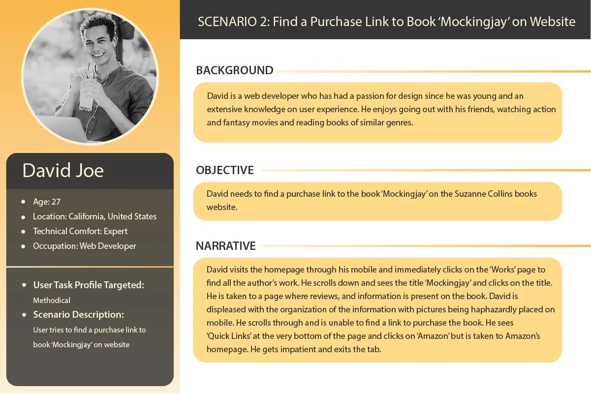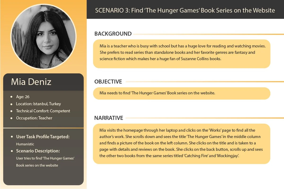 The user personas and scenarios are based on research of the target audience and there wants and needs; they lay the foundations for the structure of the project and understanding what design works best and meets usability principles.