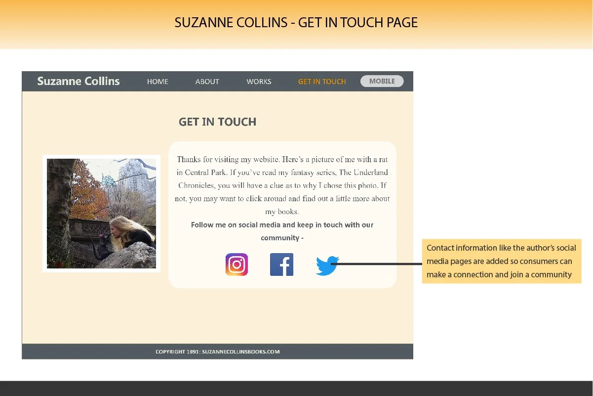 Add contact information like the author’s social media pages so consumers can make a connection and join a community.