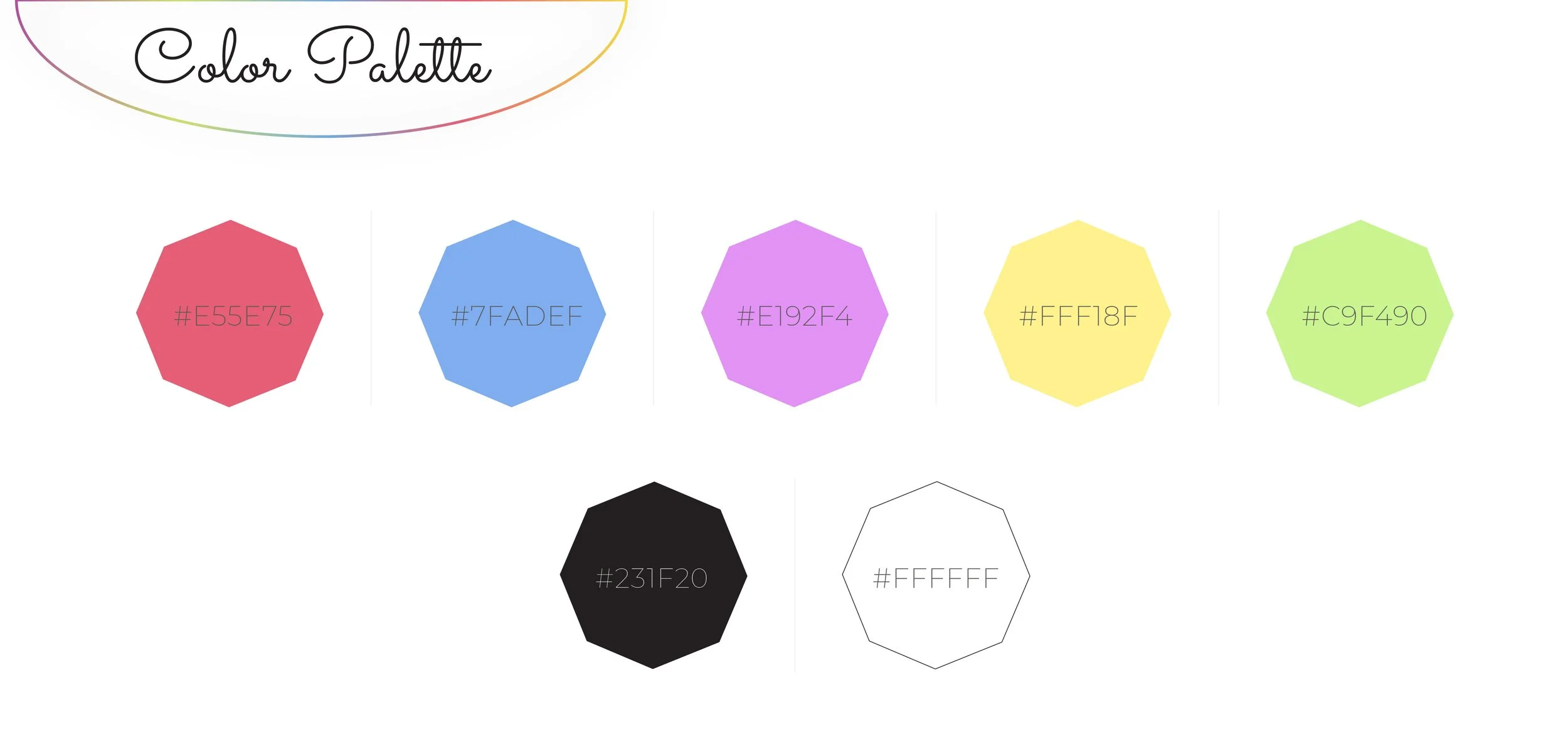 The color palette chosen are colors of the rainbow with less intensity to showcase that the business is all about diversity and inclusivity and celebrates everyone worldwide.