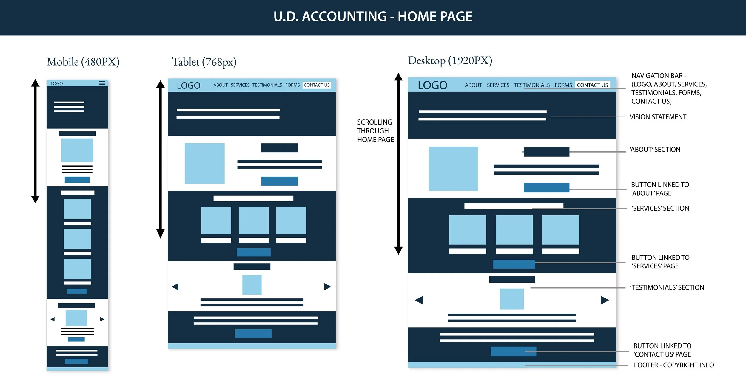 The process of creating the website involved thorough discussions with the client on what information was needed and how it was going to be structured in an effective and organized manner. The main goal of the website is to be responsive (compatible on mobile, tablet and desktop), minimal in design and content, and has smooth user navigation.